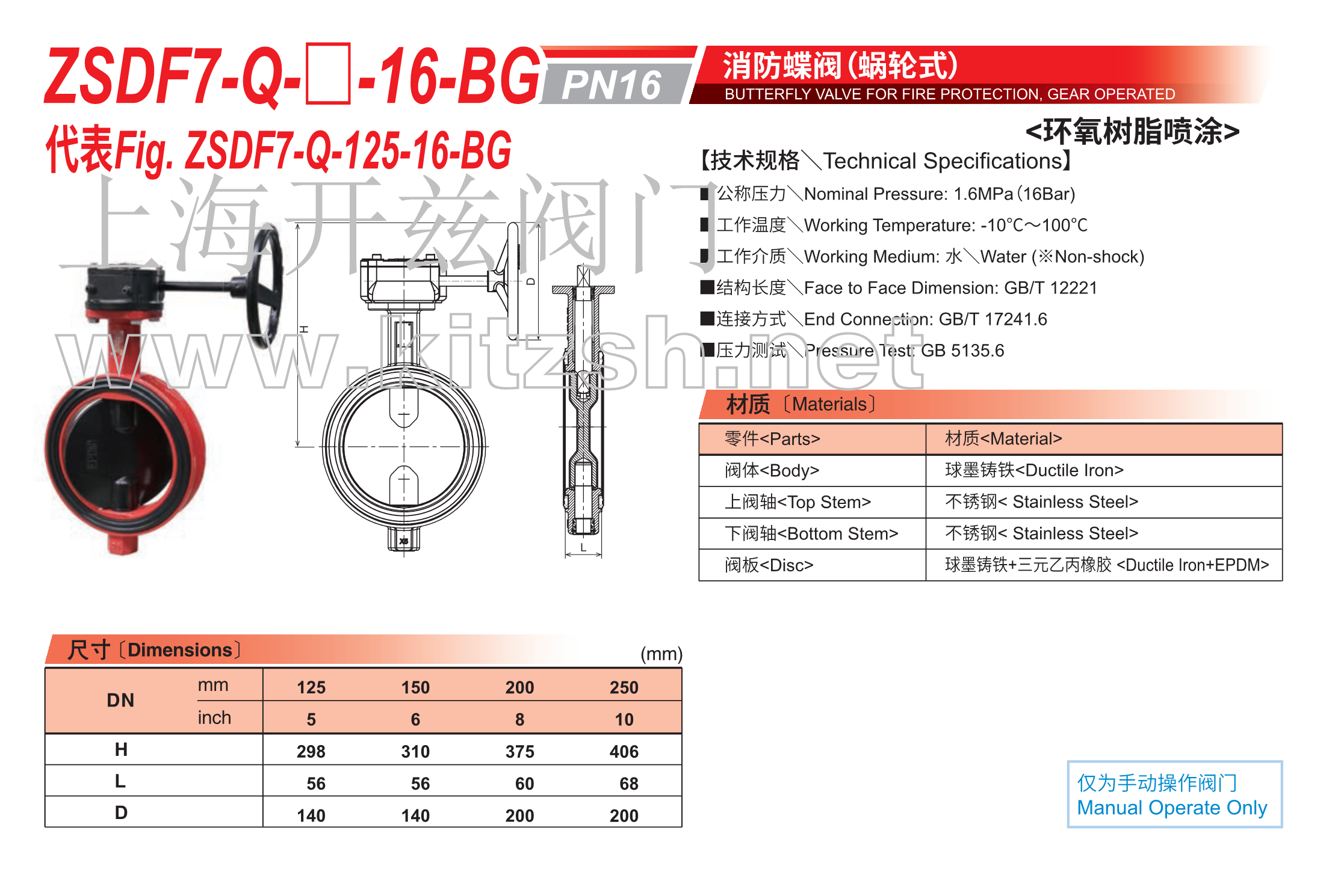 消防蝶阀 ZSDF7-Q-16-BG