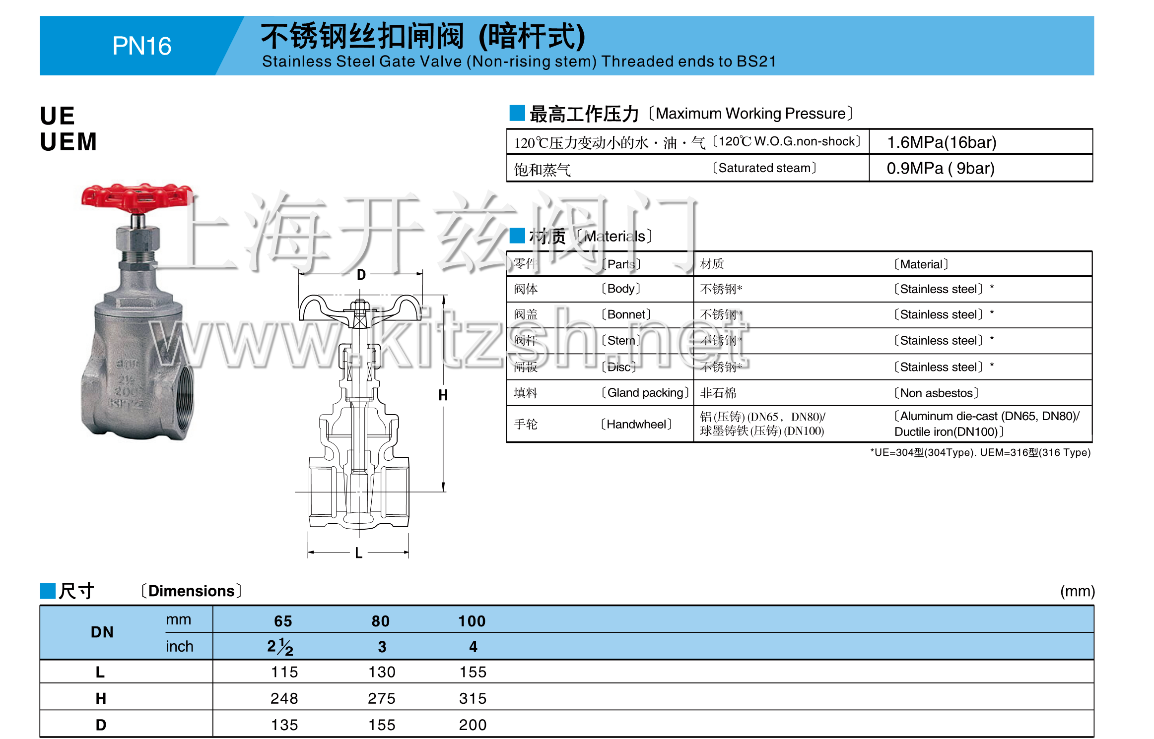 不锈钢闸阀UE UEM