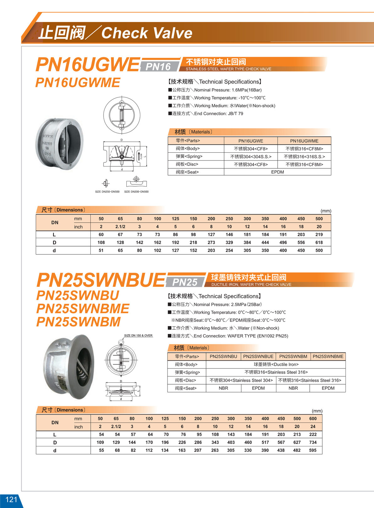 不锈钢对夹止回阀PN16UGWE